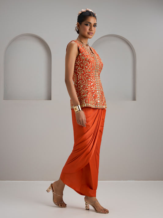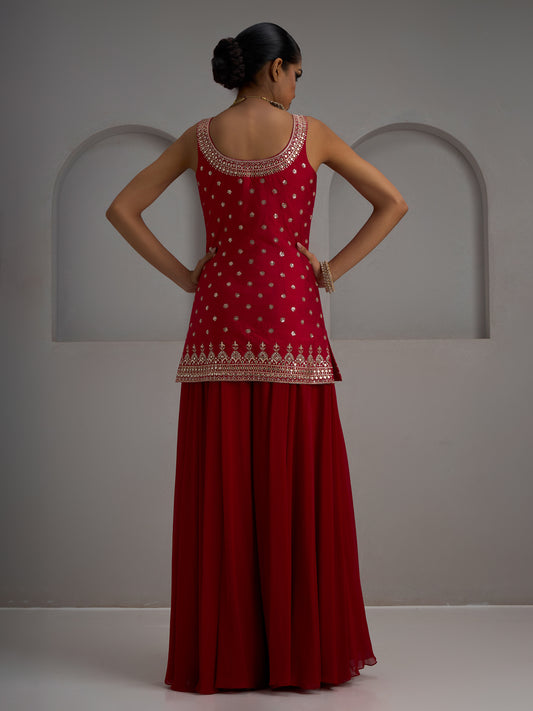 Red Tunic Kurta With Dupatta And Flared Sharara Pant