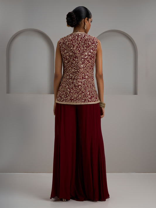 Maroon Hand Embroidered Half Sleeves Jumpsuit
