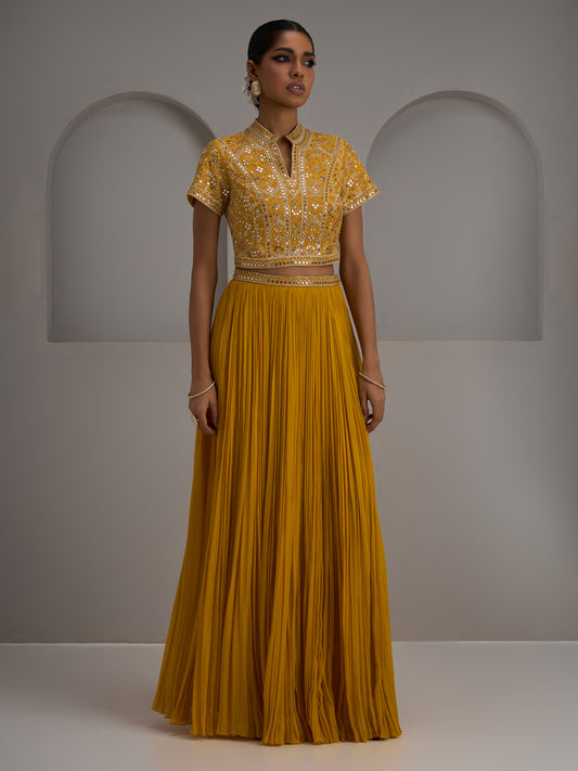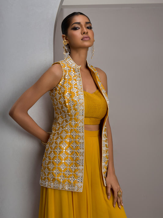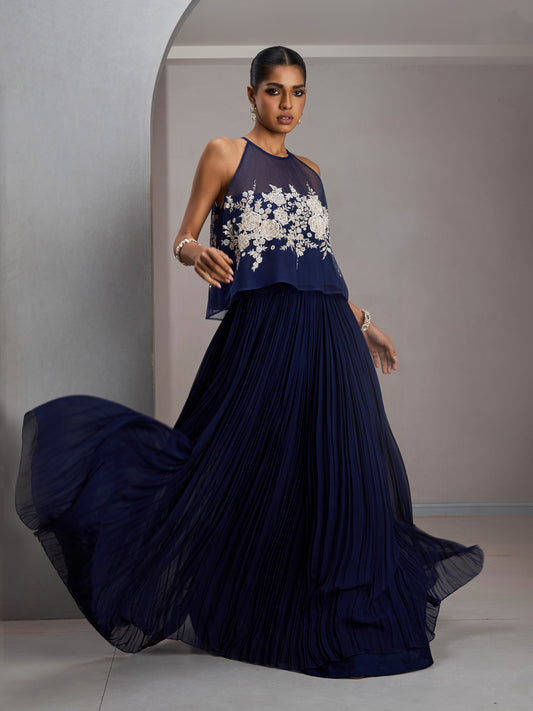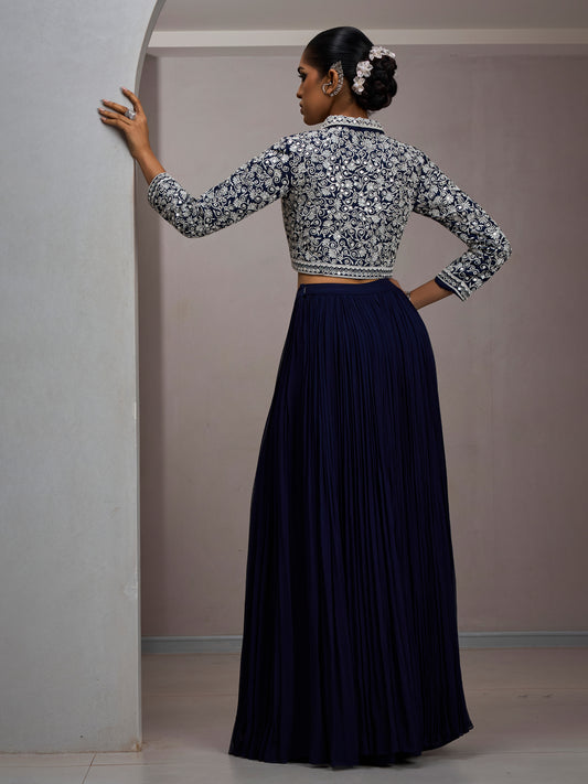 Navy Crop Top With Georgette Flared Sharara Pant And Stole Dupatta