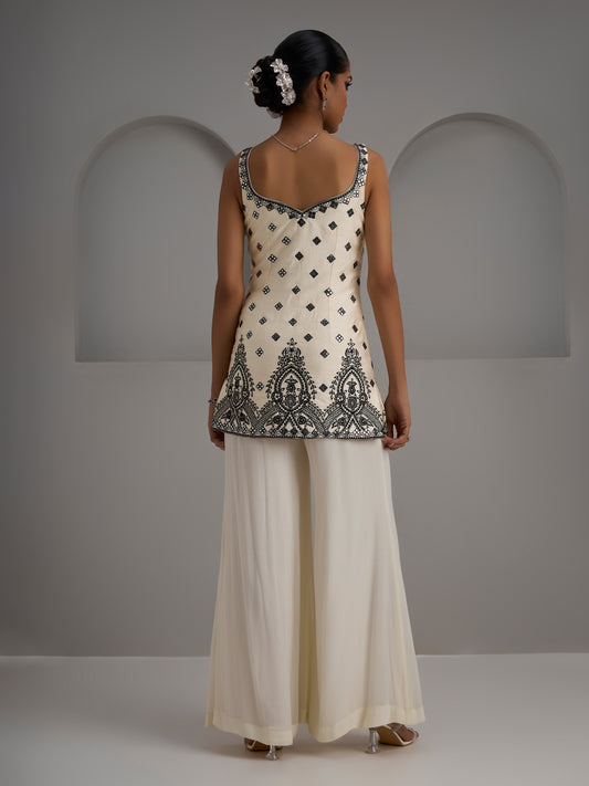 Ivory Tunic Kurta With Dupatta And Flared Sharara Pants