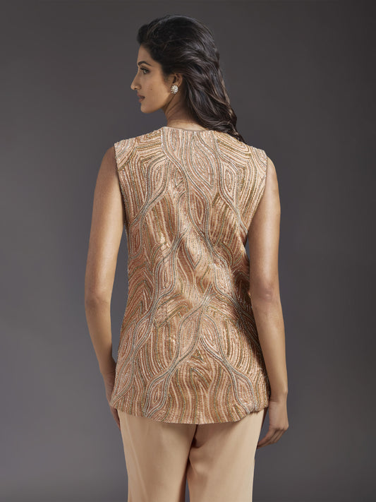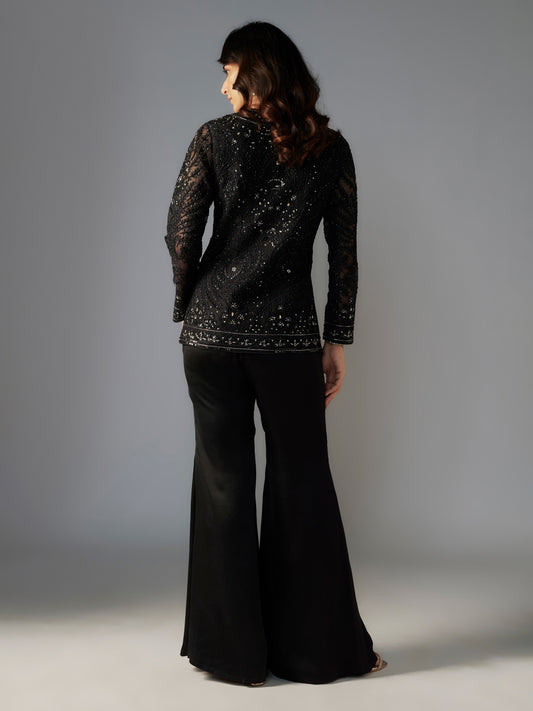 Nude Net Wave Embroidered Jacket with Georgette Pants