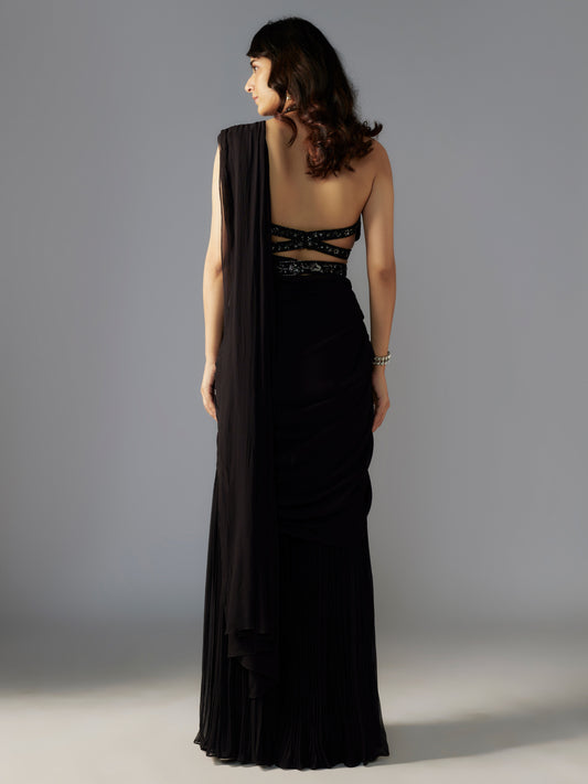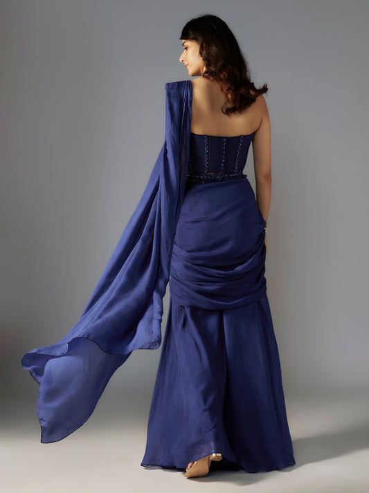 Navy Hand Embroidered Flat Chiffon Draped Sharara Set