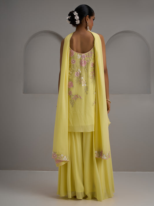 Lemon Yellow Georgette Kurti With Sharara And Dupatta