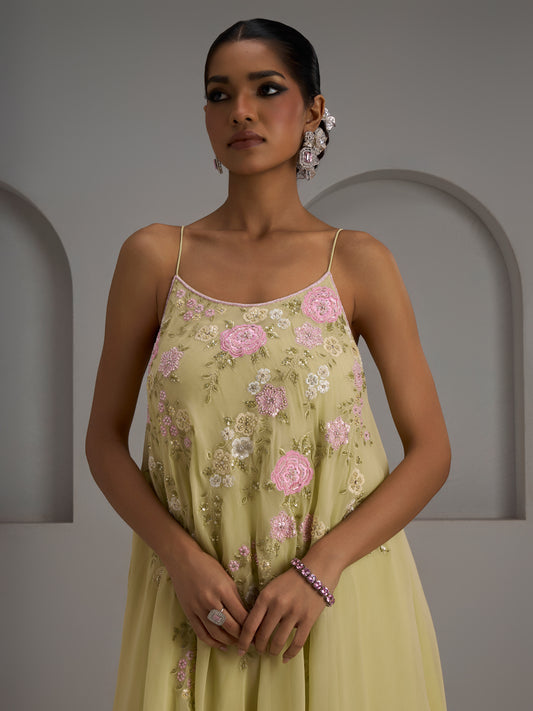Light Green Georgette Kurti With Sharara and Choker Dupatta