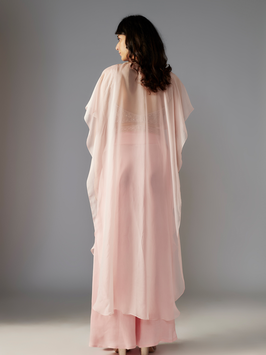 Pink Hand Embroidered Sharara Set with Cape and Belt