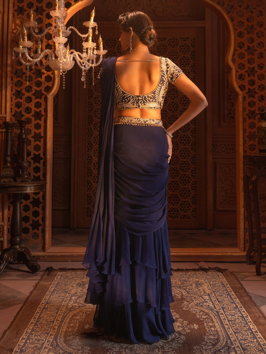 Mustard Rawsilk Blouse With Drape Saree And Belt