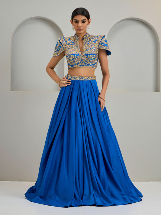 Cobalt Blue Structured Blouse With Silk Skirt