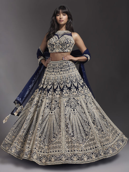 Navy Embroidered Net Lehenga Set