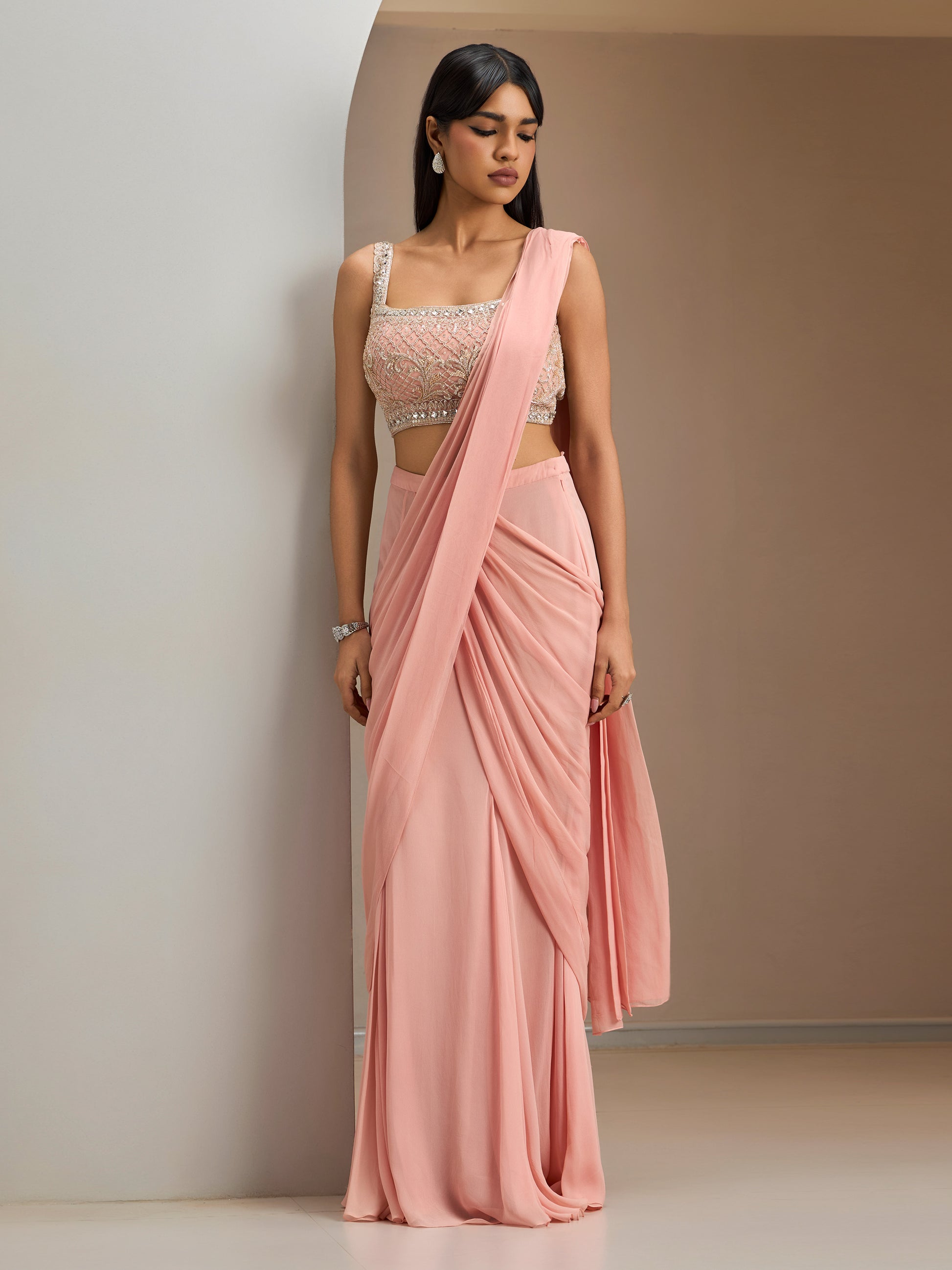 Old Rose Pink Blouse With Pre-Stitched Drape Saree