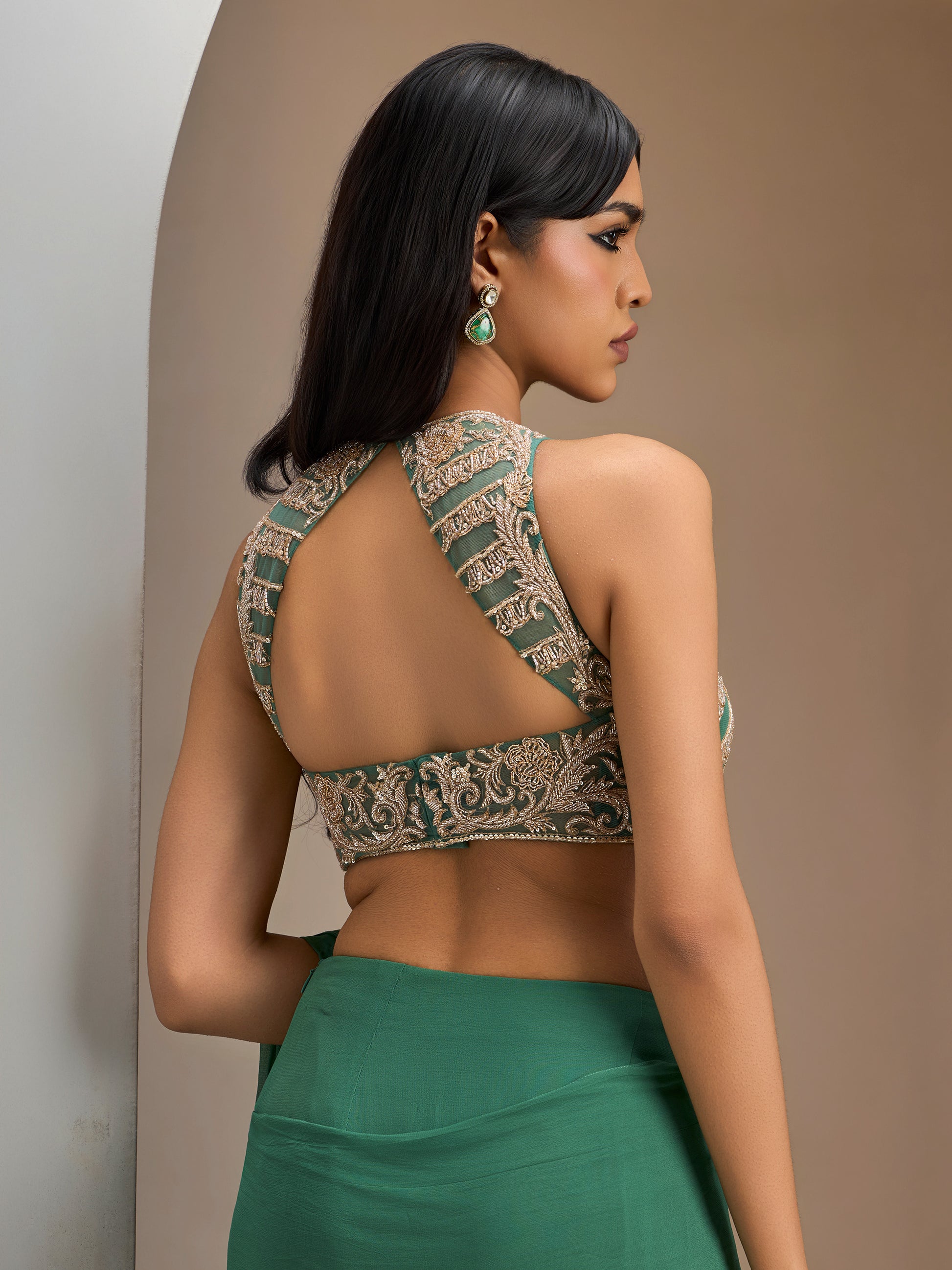 Sage Green Blouse With Pre-Stitched Drape Saree